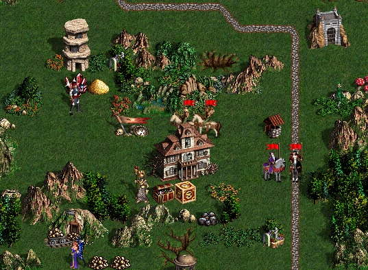 На 112 был план взять первый цех с грандами, но оказалось, что он 3ка, забоялся. Разведал ГО (хорошее - "никсы обыкновенные"). Гундула поймала землю и обречена была стать мейном, разведал улик и коробку за рухами по дорожке: Все охраны ключевых объектов при том внушали некоторое опасение (рухи, минотавры, фангармы, жрицы - всех по 20-49, страшновато лезть на 16 грандах). О чайнике пока тоже, естественно, речи не могло идти. Решил купить книжку для верности на Ивора и пойти на коробку с рухами. Конса разведанная оказалась 2-кой с ГС, тоже не взять с наскока. Оппонент, как потом выяснилось, уже успел к этому времени слить Луну на морали, пересел на Гриндана. Респ у него на 111 тоже выглядел очень приятно - 2 консы, 3 очень удобные заставы вдоль дороги, улик, плащ 2+2, очень удобная коробка за демонами. Но ему скелеты перекрыли лошку дорогу к верхней деревне, на ГО оказались злобные малоприятные зеленые крылатые бестии с иммунитетом к замедлению.