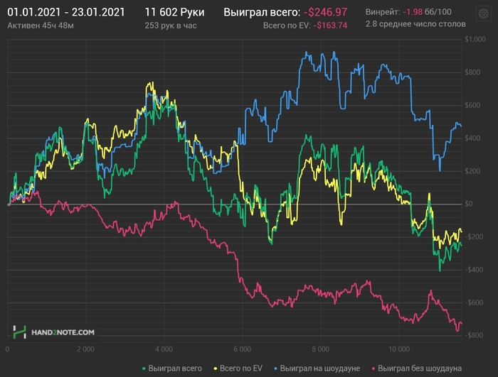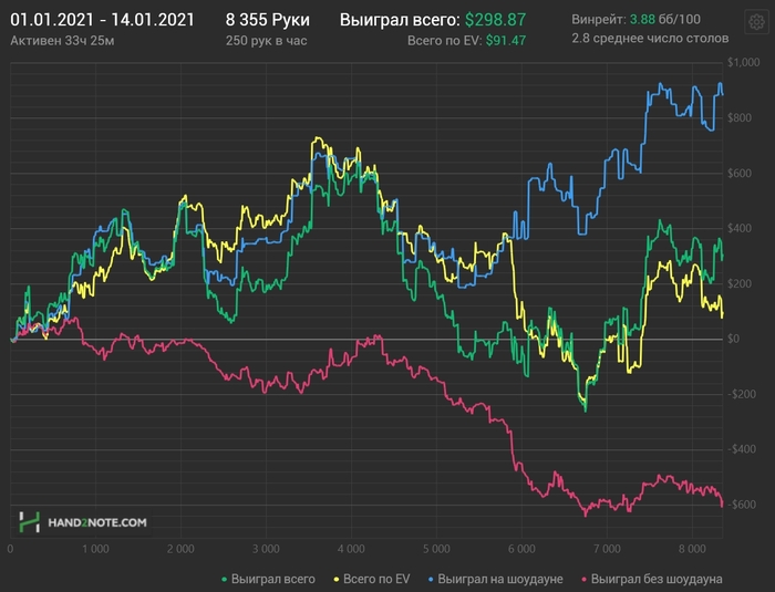 Возможно, это просто какой-то сезонный баг мозга и корона "помогла" раскачать эту лодку. А может это и какие-то звоночки по-серьезнее. Искренне надеюсь, что нет. Я решил еще разок попробовать выбраться из этой навозной ямы самостоятельно. Буду дальше наблюдать за своим состоянием и попытаюсь из него выйти поскорее. По крайней мере, после осознания, что все хреново и надо что-то решать, мне стало чутка легче и интерес к покеру (и не только) начал возвращаться. А это уже маленькая победа.