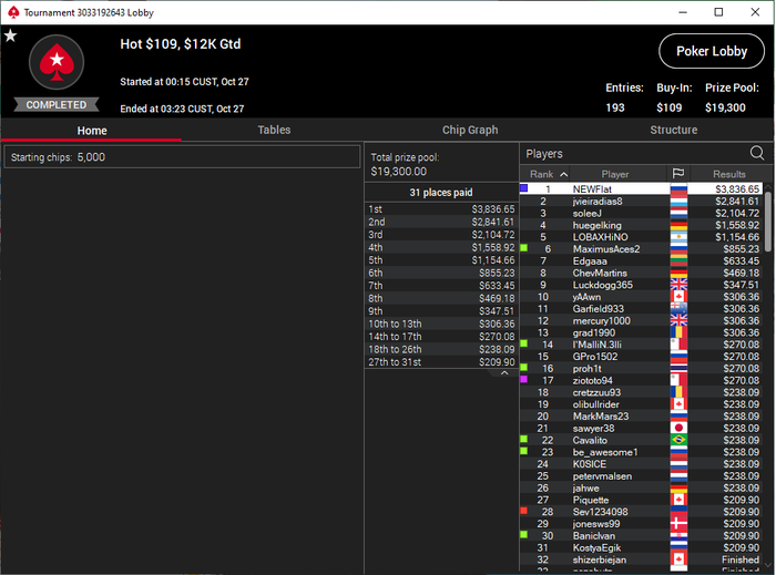 Очень хотел сыграть мейн по 530 в результате замазался в саты, пройти смог только один из последних (напрямую зарегаться нельзя, так как поставил себе антилудильный ограничитель на баины). Посадили с 25бб минут на 10 до первого выставления