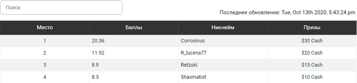 Всем хай! Промежуточные результаты пока такие в пике был + 4 баина, но была и обратная сторона - 7 баинов. Написал в пати по поводу чиплидера гонки такbt нереальные шаги у него, я за час в +15 столов кэш набиваю 4 очка он 6 очков при этом я до этого просто не видел его в Fast forward и кэш. А набивать можно только в кэш + fast