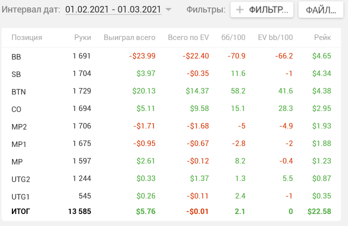 4. 3беты. Ой, это просто диво дивное, как тут падают на 3беты. Вот тут, как раз, расширять можно, как мне кажется, т.к. на 3беты падают исключительно хорошо. Сквизы и 3беты у тебя как раз небольшие, здесь тоже куча мертвых денег.