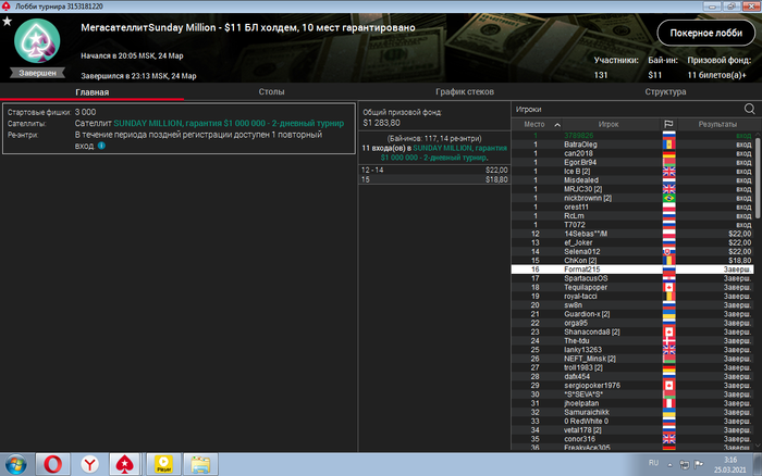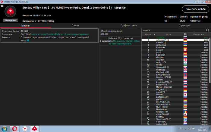 так же отобрался через сатик за 1,1$ в мини сандей миллион 22$ и о чудо.. удалось попасть в призы.
