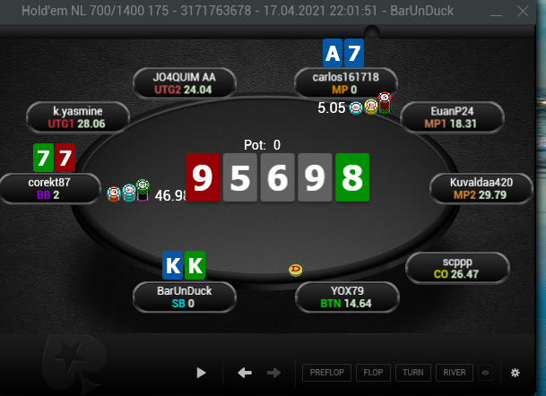 По поводу игры, все хорошо, только не складывается, усилил игру на малом блайнде, винрейт стал адекватным, осталось порешать вопросы с большим блайндом, винрейты на нем не радуют, много оверфолжу в мультипотах на бб, мало защищаю в мультивеях, на этих лимитах проблему можно решить видимо только широким рестилом, так же попробую страту широких рестилов против CO и BTN.