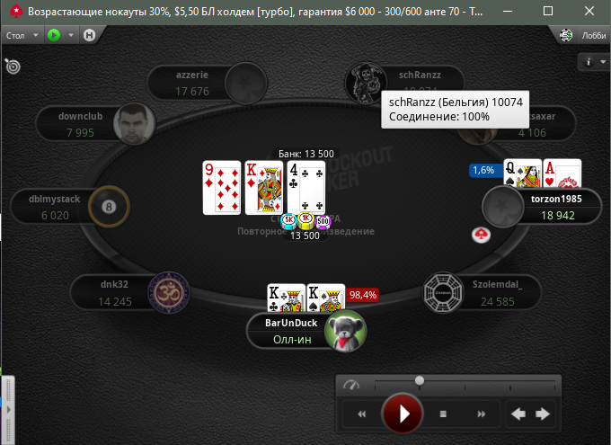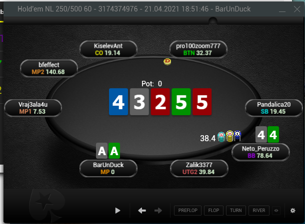 Вот такая петрушка всю дорогу была, все префлоп ехали.
