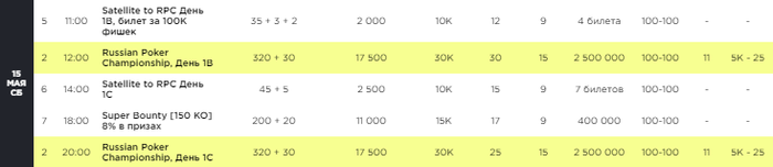 Расписание на завтра - Russian Poker Championship набирает обороты, а в роли вечернего сайд-ивента выступит турнир Супербаунти.
