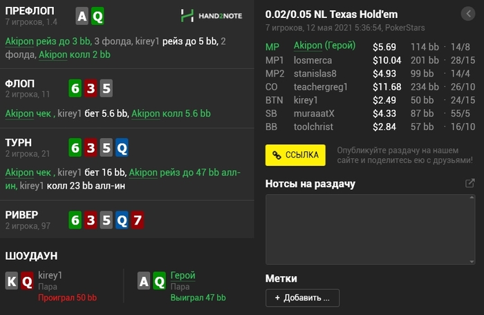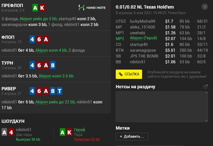 Банкролл подлатал, думаю будет разумно сделать очередной полноценный выход на NL5.