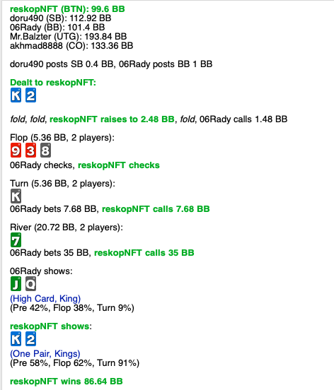 Кто-то скажет “Ну ты жлоб, жалко отдать 5-10% за вывод?” Но я закален переездами, когда выставляешься на флопе с сетом против оверпары фиша и ему доезжают 4.5% оба раза. Поэтому для меня тот, кто берет 5% в перспективе способен забрать весь БР.