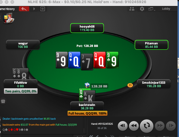 В турике вылетел в первый же час. Выставился по топ паре с фишом-коротышом в лимп поте , который ранее пихал Ах префлоп, но залимпил KQ. Покатал кэш пару часов и поехал домой.