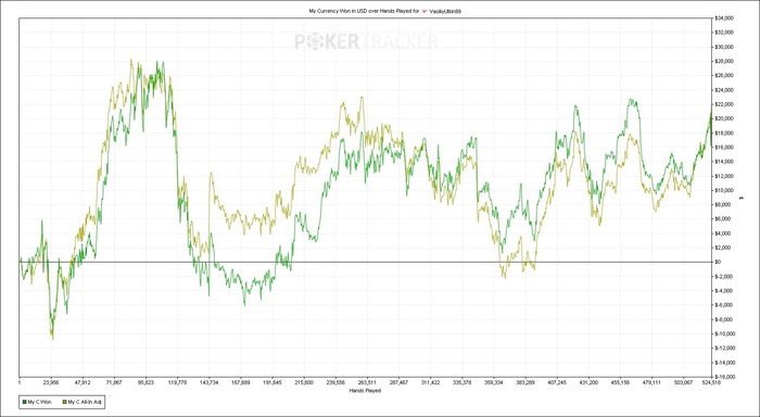 Работа в группе и с тренером результаты дает, хотя очевидные лики все же в первую очередь (сжирающие гигантскую часть ожидания) вижу непосредственно в проведении игровых сессий. Бывали дни, когда качество селекта страдало и было желание "просто катать" или мега-грубые ошибки против фишей на 125-150бб (потом эти раздачи сутками крутятся в голове), когда просто по неведомым причинам отдаешься на ровном месте .