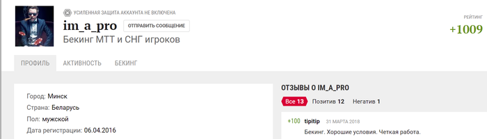 P.S. Наряду с Типитипом был партнером в бекинговом проекте который Гуров благополучно и без последствий для себя кинул. Плюс от Типи в собственном аккаунте связан с тем, что он и сам бекался в нашем же проекте.