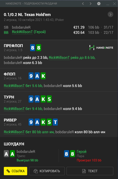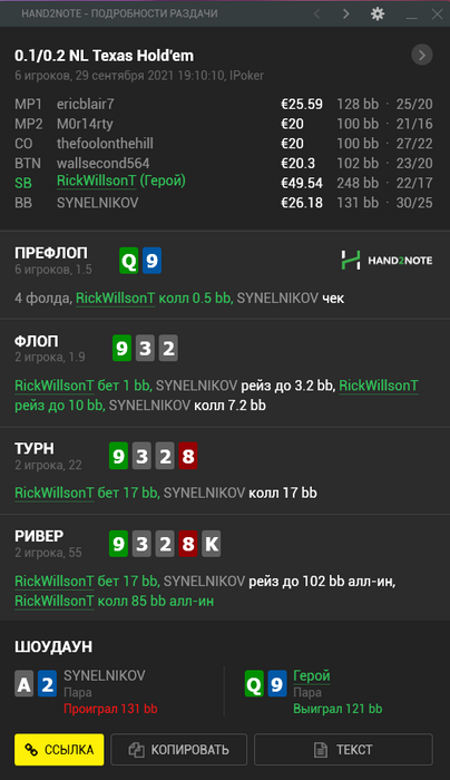 Забавно что с данной рукой опп взял почти весь тайм-банк.