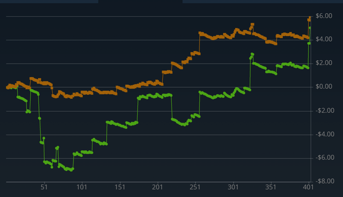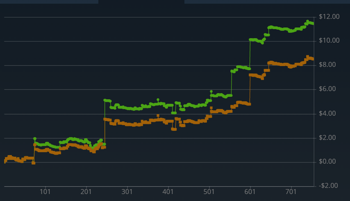 В PLO5 я играю на уровне фиша, который бы в короткой колоде коллировал бы пуш на 66. Но все равно гораздо выгодней играть даже так, чем месить рейк в шордеке. Даже выгодней, чем анте 10 играть, а учитывая то, что в короткой колоде не редкость такие графики, где желтая идет вверх, а зеленая вниз рук на 40к, тем более.