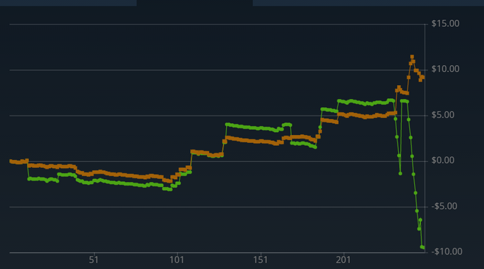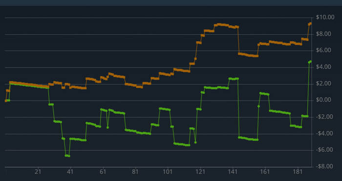 Подведем итоги месяца. Последняя неделя была просто тупо лудкой, я даже графики не буду выкладывать. Залетел против челиков, играющих страдл олл ин, в сточку проиграл 30 долларов, пошел отыгрываться на анте 25, отыграл 20 долларов и закрыл к чертям рум.