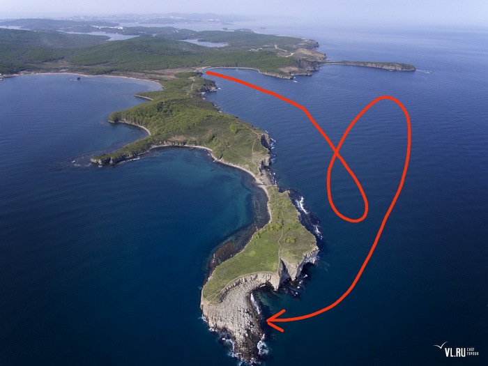 Путь наш пролегал вдоль мыса Тобизина, что находится неподалеку от Русского острова — который так любит посещать дядя Вова и проводить там международные форумы.