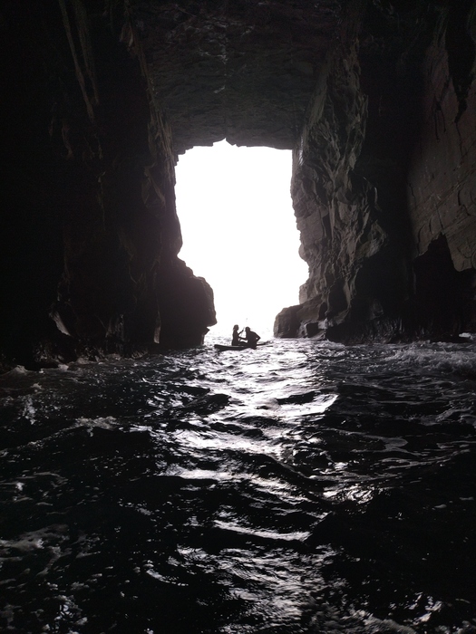 Подплывая к концу мыса, нас ожидала такая удивительная пищерка в скале, заплыть туда не легко, как и сделать фото перед самим входом. Из-за волн сильно шатает и мне с трудом удалось поймать тот момент, когда волна откатила и было более-менее спокойно, поэтому на фото не видно эпицентра бури)