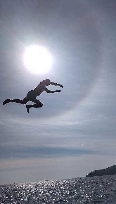 Когда плыли вдоль мыса, ветер дул в нашу сторону. На половине пути это не сильно ощущалось и плыть можно было без особых усилий. Чего не скажешь о второй половине пути. Все дошло до того, что всех раскидало друг от друга метров по 200-500, а подругу нашу стало вообще уносить в Тихий океан... Я плыл позади нее и это увидел. Она что-то кричала, но что именно, разобрать из-за ветра и морского шума было невозможно. Сперва казалось, что она захотела побывать в центре моря и прочувствовать эту пустоту вокруг — единение с океаном. Такое не часто увидишь, и эта картина на редкость прекрасна!