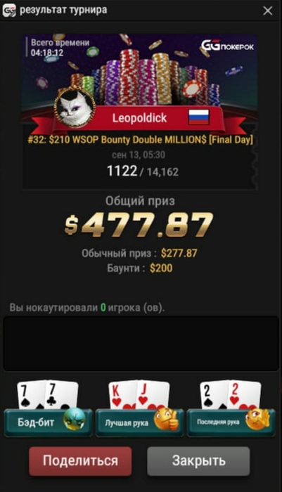 Для меня это реально событие) Конечно, внедрялись суммы X10 за сессию и даже больше. Но то кэш, и, как-то, это было не так значимо) В общем, это мой самый дорогой турнир, за все мое знакомство с покером)) И вообще, ни хрена не по банкроллу. Но он очень важен символически, как и мой блог. Это старт нового покерного этапа в моей жизни!