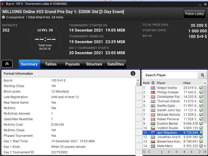 В январе плотно бахал, отыграл 1к туриков, в фервале плотно бухал, на данный момент общая дистанция 1080 турниров. Короче цели на этот месяц отыграть хоть как-нибудь хоть сколько-нибудь, чисто чтоб из фонда не выгнали.
