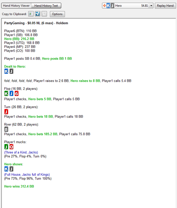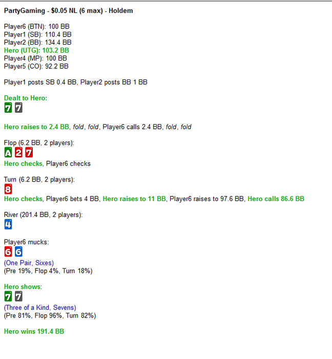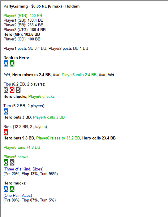 Тут скорее вопрос, что опп мне рисует, а рисует он флеш, но проблема в том, что флеш так не играет(опп рег). С флешом ему с меня нужно добрать по максимому, а не выбить с раздачи (это чисто эмоциональная ставка, т.к. его достали мои рейзы, поэтому я и заколил)