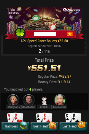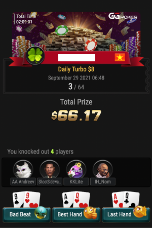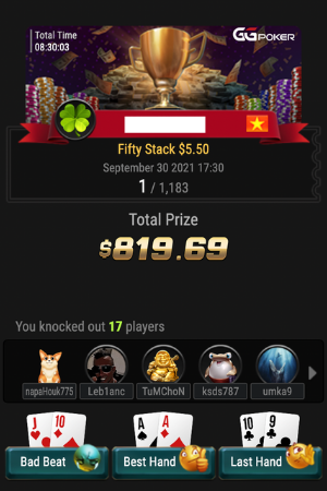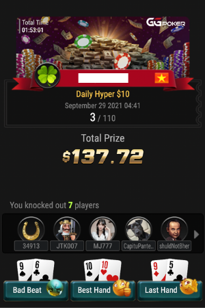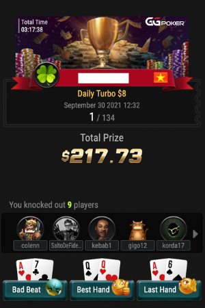 Уверенно себя чувствую в игре со 100 и 200ББ + регулярной скоростью и играю эти турниры, если на них есть высокая гарантия, так как она привлекает слабых игроков.