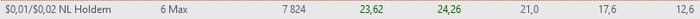 На 50к рук получился вр около 6бб/100, думаю свои 10бб вполне можно делать, но на данном этапе это не целесообразно. Решил перебраться на рег столы. До конца месяца буду сидеть там, набивать ролл. Думаю откатать там 30-40к рук, дальше буду думать.