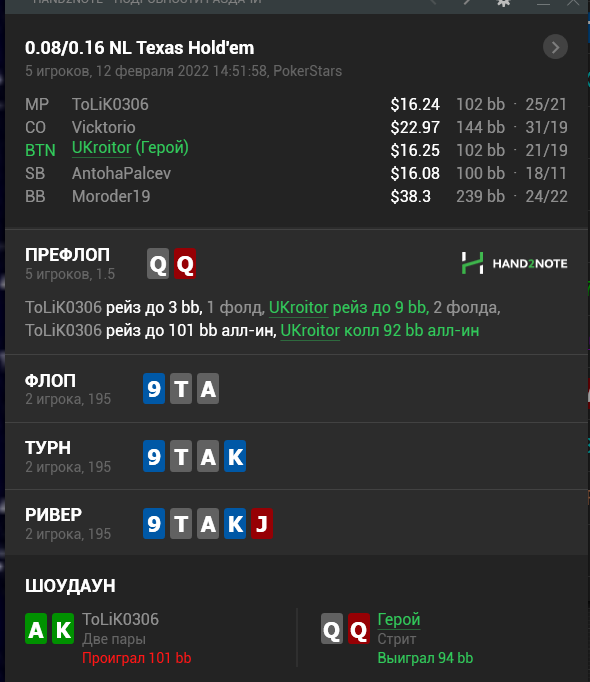 И пуша овербет терн выбивая 99 1010 88 иногда и JJ хочется задать вопрос это в блеф? Или куда?