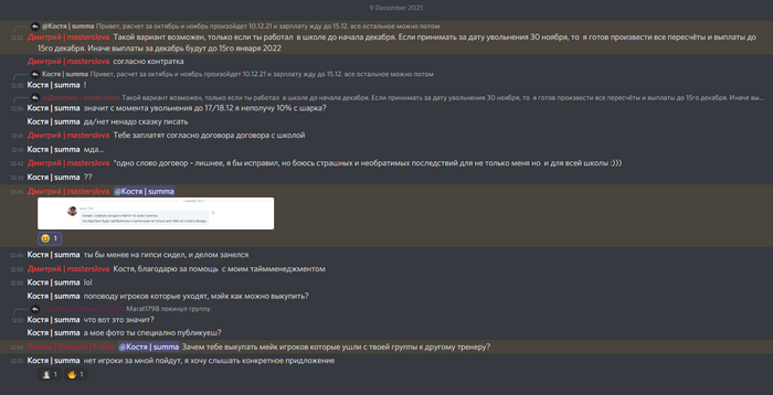 В договоре тренера прописано, что если проект хочет уволить его в одностороннем порядке, то он школа его предупреждает за 14 дней, он дорабатывает и уходит, рассчеты производятся в 14 дней, скрин об этом выкладывался выше, возможно даже самим Костей