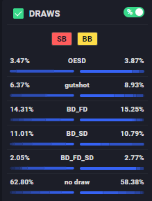 Этот спот интересен тем что тут много гатшотиков, которые очень просто перерейзить, а в качестве велью должны выступать не самые очевидные вторые пары. Сайз 3бета подобран как бы таким образом, что все гатшотики хочется поколить, потому что шансы банка позволяют. На деле же оверколл скорее усубляет ситуацию, так как на любом терне придется выбрасивать почти все руки.