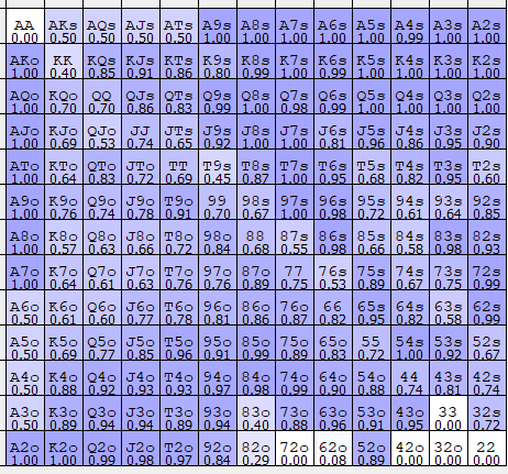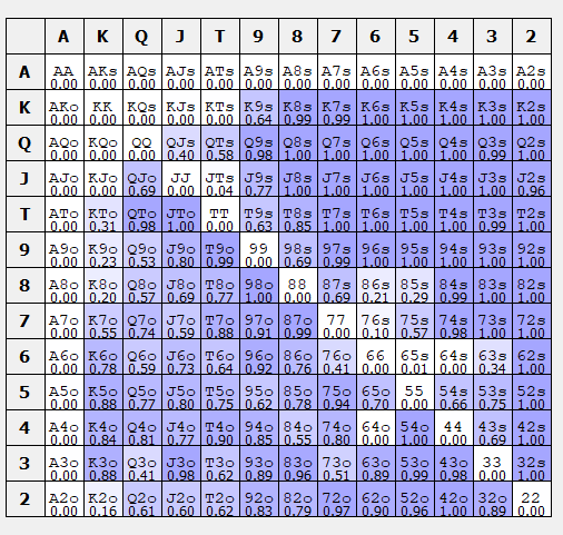 3) А вот тузов у СБ в лимпе не 97%. Причем не в теории, не на практике. Большинство слабых Ахо уже опенпушатся. Сильные Axs рейзятся примерно равным миксом, сильные Ахо тоже, но заметно реже. Как минимум, протектить нужно не только лимп-пуш лимп-кол, но и рейз-пуш рейз-кол, в 13-14бб он еще имеется. На практике, из-за недостаточного количества изопушей по полю, средние Ахо имеет смысл пушить даже чаще чем ГТО, по этому в лимпе тузов может быть еще меньше.