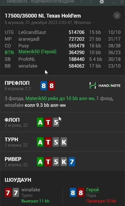 и понял что все закономерно, если ты играешь как обезьяна с гранатой, то покерок тебе воздает иногда, правда почему именно против меня? Но это вопрос риторический...