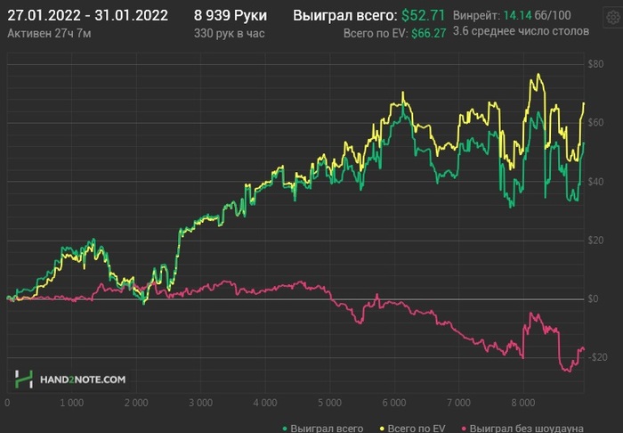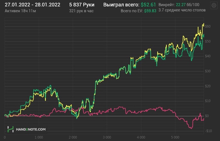 C этого месяца буду пробовать переходить на 6макс. Как эксперимент. По ощущениям 6макс все таки больше мне подходит в плане динамики, 9 макс очень унылые реги сидят, и фиши которые запрыгивают со временем становятся такими. Тупо даже оверпары даже не докалывают, выкидывают на флопе, этот пипец конечно унылое зрелище, игра тупо на натсах в пасьянс.