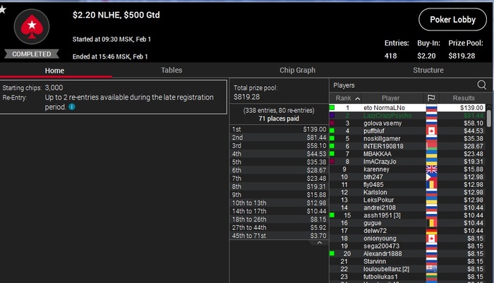 ALDAIR68, да нормально 600 мтт для микро, с учетом что надо будет грузить в основном 2,5$+ турикиа их не так уж и много в лобби на гг, про омаху оппонент сразу предлагал , но я сразу отказался, потому что в омаху сыграл 0 рук и даже рейнджей опенрейза не представляю себе.