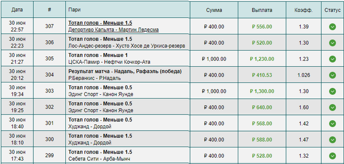 Начальный банкролл 2000 р (БК МАРАФОН)