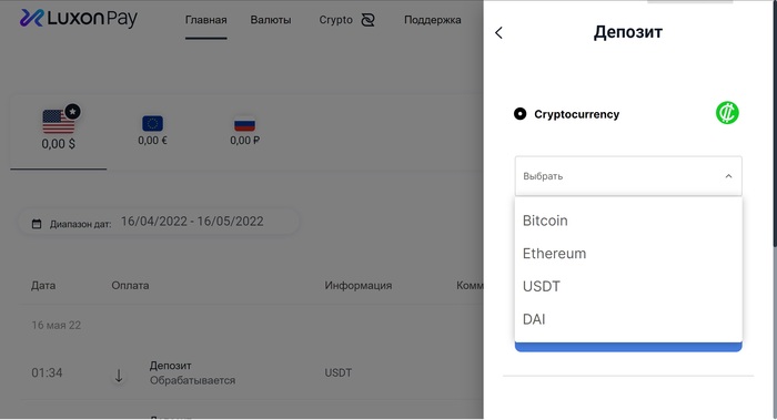 Нынче LuxonPay можно пополнить криптой напрямую