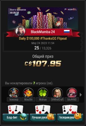 За ЛБ заработал 3$ ну и неплохой рейкбэк получил в турнире для неудачников)