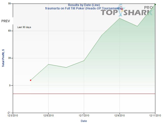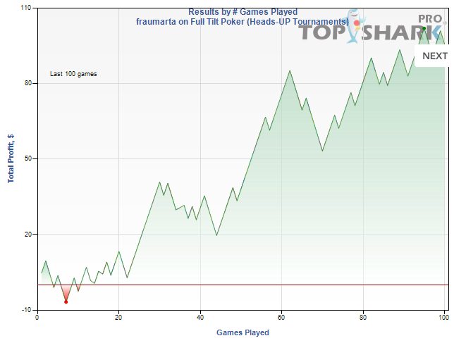После работы сыграл 13 матчей. Что интересно, сначала сыграл 7 матчей, из которых только один выиграл. И то: выиграл прфп коин ТТ>AQ в пушботе. Из 6ти проигранных матчей: два раза одному и тому же оппу доезжал раннер-раннер флеш. Он просто ставил с блефом, я это знал, т.к. к тому времени понял его игру, и хотел его поймать на этом со своей ТП. И на рвр ему закрывался раннер-раннер. Дважды