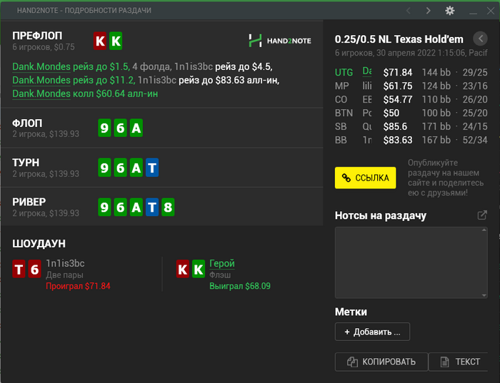 докатаю ночью потом полчаса, сейчас мтт себя побалую) настолько начал исправлять у себя 3бет, что вообще за эту сессию 4 процента был ( хотя просто рук не давали, кек) pohuy.
