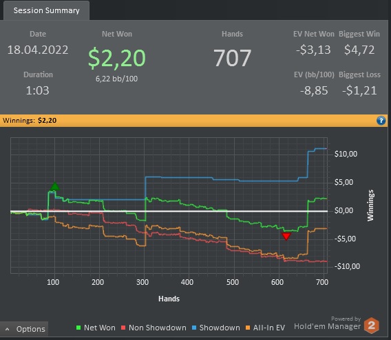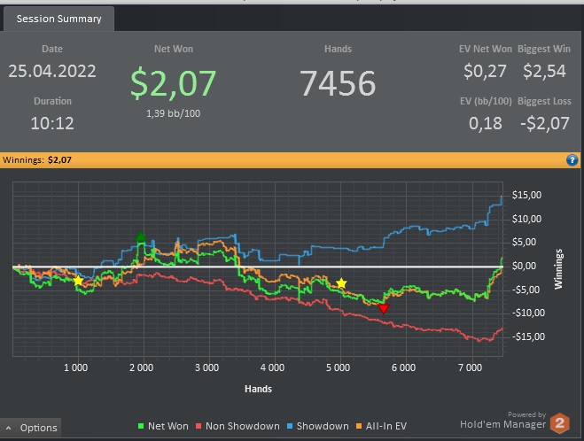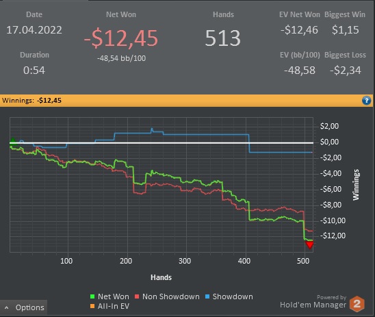 Сегодня тоже мимо) Еще и КК не смог с фолдить на прифлопе, очень хотелось выиграть ))) Остался 1 би на нл 5