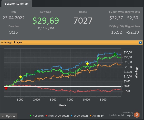 Еще одна мини сессия, но в плюс ) Мне даже удалось три стека выиграть !!! Правда все по красной растерял )