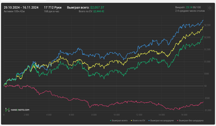 Теперь я больше не участник фонда Гринлайн, играю теперь гг клабы нл50-100, в совей игре практически ничего не менял, разве что добавил больше эксплойтных контбетов флопа. А в целом изменилось только поле на котором играю...