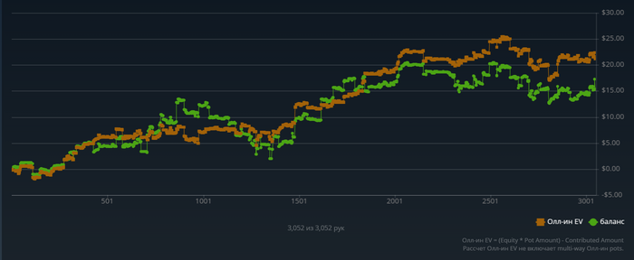 Отыграл еще 1000 рук, зеленая все равно упала и того за день не дабор около 6-ти стеков. А кэшауты рука не поднимается