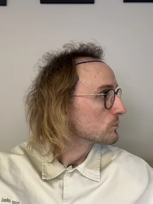 Пересадили 4300графтов,методом DHI,забор был пуншем 0.7 Команда попалась опытная,за 8 часов управились.