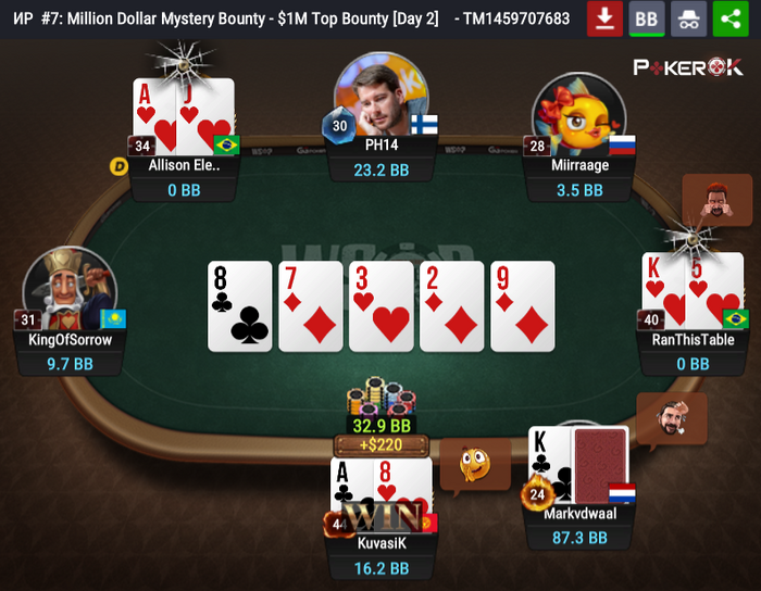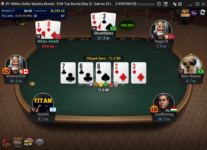 Утроение для Miirraage. Markvdwaal выиграл небольшой сайд-пот у KuvasiK.