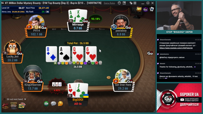 BigGOGI закончил турнир на 36-м месте ($8371 + $1080), не дождавшись на доске валета.