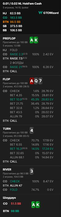 База №3 тут фиш пушил каждую руку поэтому решил что туз AQs будет достаточно для колла, но анлуко