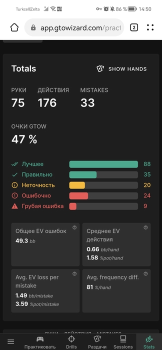 Закончил с недобором в два десятка БИ, что для МСС можно умножать х3 и с сильным осадком на душе, ибо играл четко по чартам опытного в свое время мссника Diafall'а и погряз в ужасный гринд который оказался безсмысленным и выматывающим, на тот момент не знал что там рейк префлоп и я заведома обречен на провал играя по МСС стратегии в этой сети и тем более в быстрый покер.