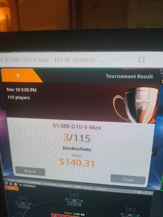 Во первых я смог отобраться на турнир за 109 долларов на Тайгере (сат за 4,4 + 1 ребай + аддон = примерно 8 долларов). И занял в этом турнире 44 место (примерно долларов 450 получилось заработать). Так же на Редстаре я занял в одном турнире ТОП1 и это ещё 440 долларов. Ну и помелочи были ИТМы в других туриках. По итогу я отбил всё и ушёл в очень хороших плюс.