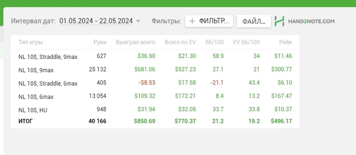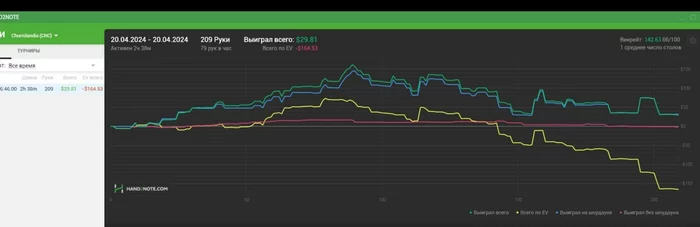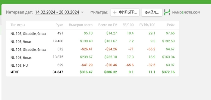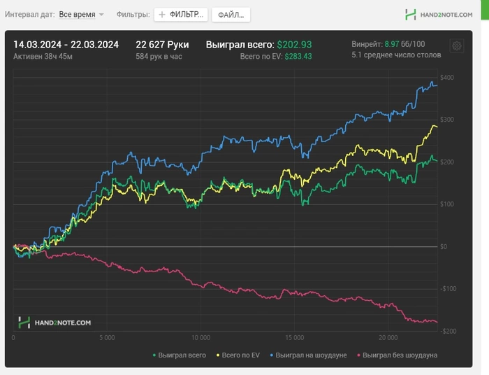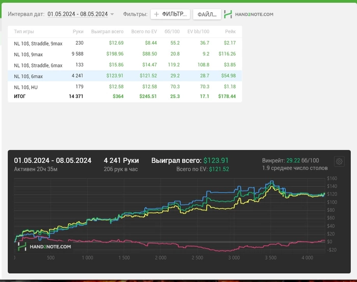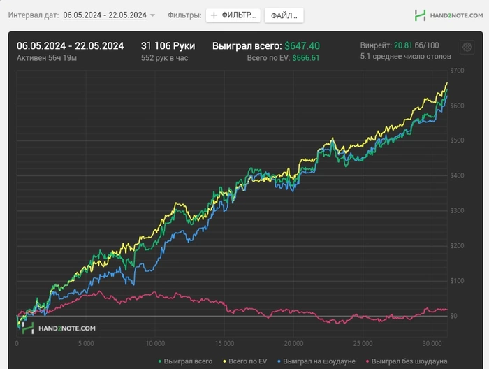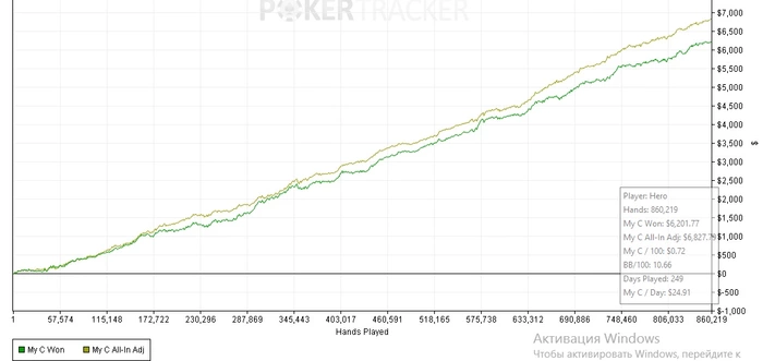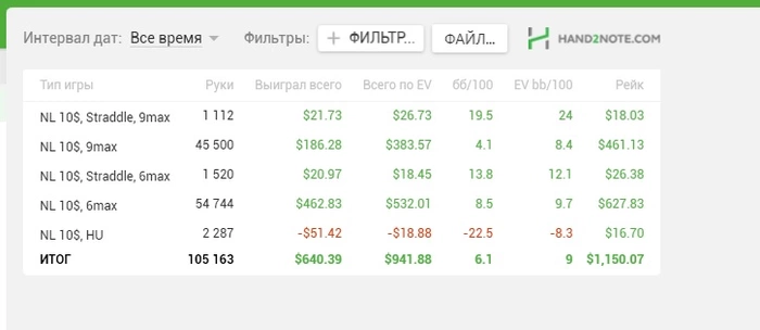 Из положительного,занял первое место во фрироле автоаалин,дали 100$,еще нажил на быстрых столах около сотки,хотя и там по ощущениям сильный недобор,радует что хотя бы по ев винрейт нормальный