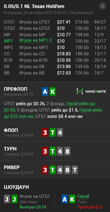 Мой друг написал мне сегодня, что префлоп сыграно ужасно. Мои аргументы: 1. у нас есть фиш впип 94 + фиш на сб 2.за этим столом 3бетят редко (этого мой друг знать не мог) 3. хоть у фиша с випом 94 и мало денег в стеке, но он все время проплачивал остальным даже без совпадений + чел который открылся рейзом тоже может что-то иметь и при попадании в сет ситуация будет чуть лучше (понятно, что можем и накрутиться в сет старше, но это не часто будет происходить). После моих аргументов друг, вроде, все равно остался с мнением, что колл сильно не очень. Я понимаю, что это точно не супер-пупер прибыльное действие, но мне кажется оно точно плюсовое. Как вы думаете я лох или норм?