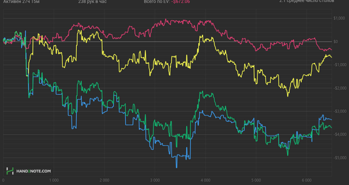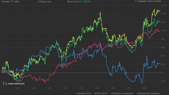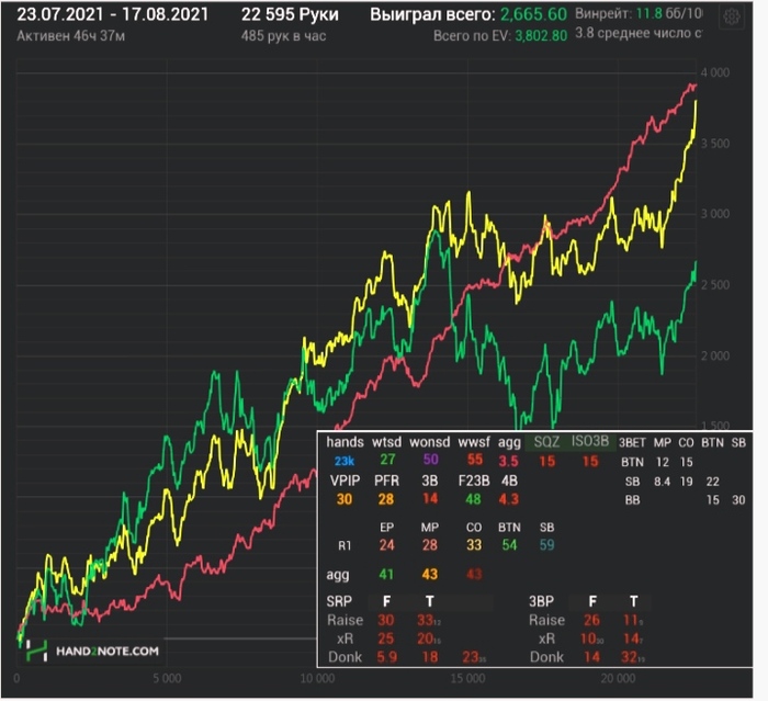 Считаю ли я что этот график что то значит? Или выставит меня в лучшем свете - Нет офк, но считаю что он может говорить о каких то знаниях, которые я могу дать, с тем более регам 100-200 и на самом деле 500+ тем, кто поймёт мой тип мышления или хотя бы попытается и график здесь вообще не причём. Каждый раз был в ахуе когда кто то давал трени разбирая базы на 20к рук(не скам?), когда обсудив пару раздач с человеком, можно узнать намного больше.